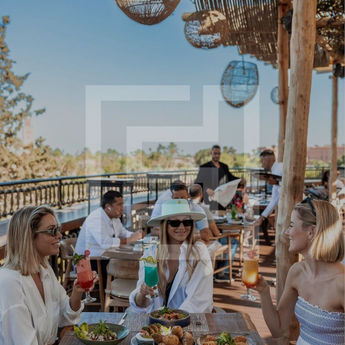 Bienvenue sur le meilleur rooftop de Marrakech, offrant une vue panoramique à couper le souffle à 360 degrés sur la ville rouge et les montagnes de l'Atlas, au milieu d'un jardin urbain et d'un élégant club de plage, conçu autour d'une piscine circulaire toutes saisons, de cabanas, d'une terrasse ensoleillée, et de zones de restauration et de bar décontractées. Le Rooftop Garden dégage une exclusivité chic, avec des DJ internationalement reconnus et des artistes locaux, c'est l'endroit idéal pour siroter un cocktail et profiter des vibes, savourer une cuisine méditerranéenne et marocaine, et se détendre pour admirer le coucher de soleil de Marrakech au son du set du DJ, depuis la terrasse ou l'immense baie vitrée.