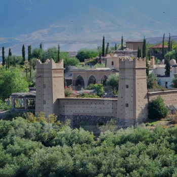 Sur le haut de la colline, offrant une vue magnifique sur l’Atlas, composé de 19 chambres et 9 lodges, ainsi que 10 bergeries, l’hôtel de la Kasbah Beldi offre le charme et le confort dans ce lieu isolé, au pied de l’Atlas, avec 2 grandes piscines, 1 piscine pour enfant et un SPA avec un hammam traditionnel et salles de massage.