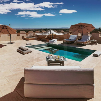 Membre de Small Luxury Hotels of the World: Ksar Char-Bagh est un palais privé inspiré par l'architecture mauresque du XIVe siècle, situé sur 3,5 hectares avec de l'eau et des ruisseaux qui se croisent pour symboliser les rivières du paradis. Les suites luxueuses et raffinées du Palace ressemblent davantage à des appartements privés où la nature est toujours présente, chaque suite disposant d'un jardin privé ou d'une terrasse.